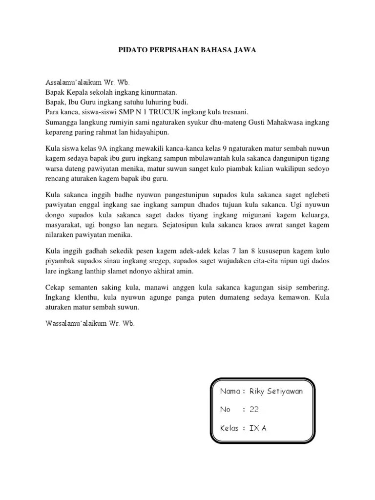 Pidato Bahasa Jawa Tentang Perpisahan Kelas 9 : Dgo P4a 0 Sd7m / Contoh pidato bahasa jawa singkat tentang .